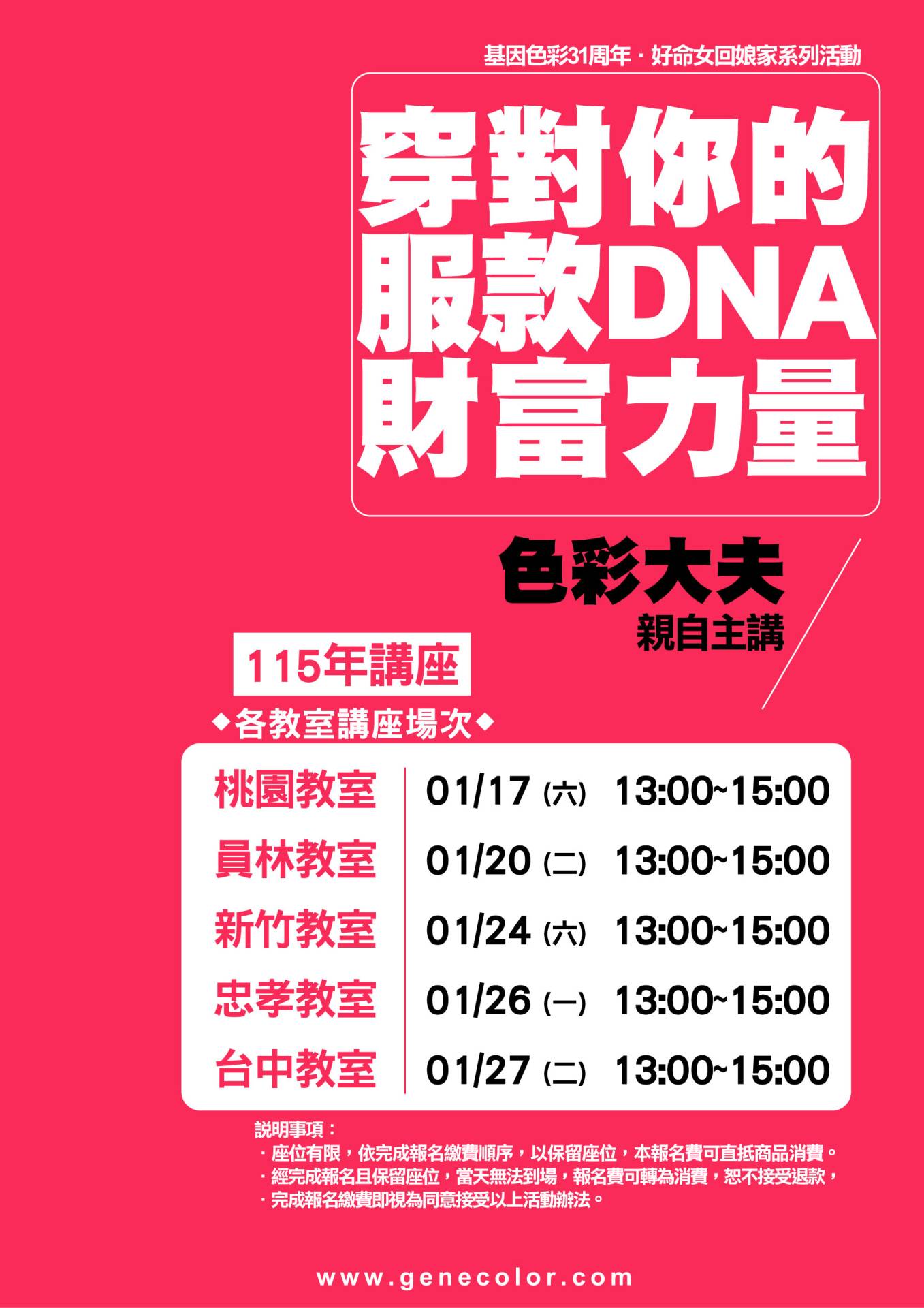 *穿對你的服款DNA財富力量-1月全國巡迴講座場次*