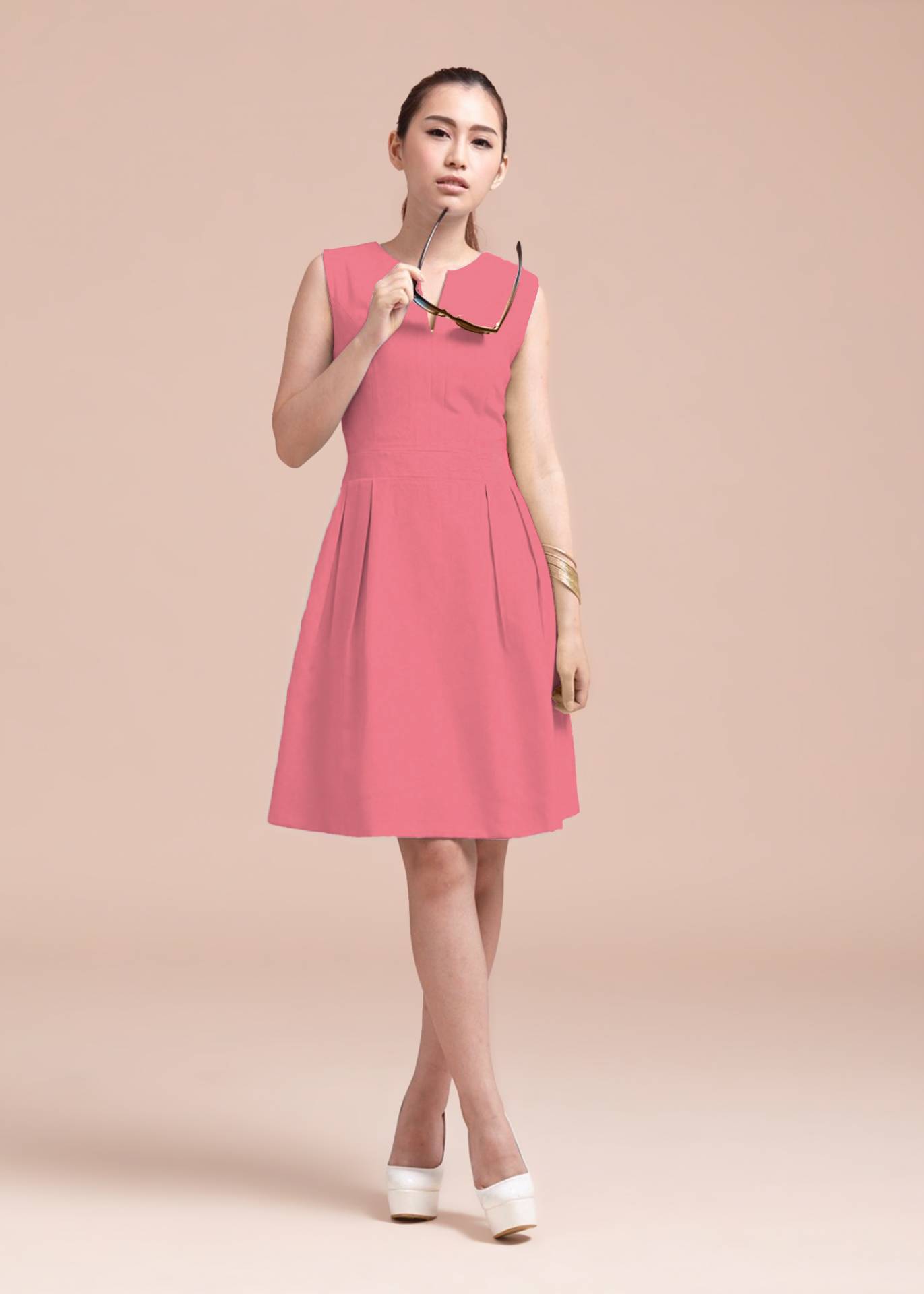 商品介紹 一、設計概念 :本款以走在紐約第五大道上的奧黛麗赫本為設計繆思,時尚深V領型,出色雅緻,多片剪裁立體美麗,微蓬的雙向合摺裙擺,俏麗高雅氣質,妳,還在等什麼?二、布料與材質 :表布:鮭魚紅-Polyester(水洗麂皮);內裡 - 吸濕排汗的Polyester。 商品規格 查看更多