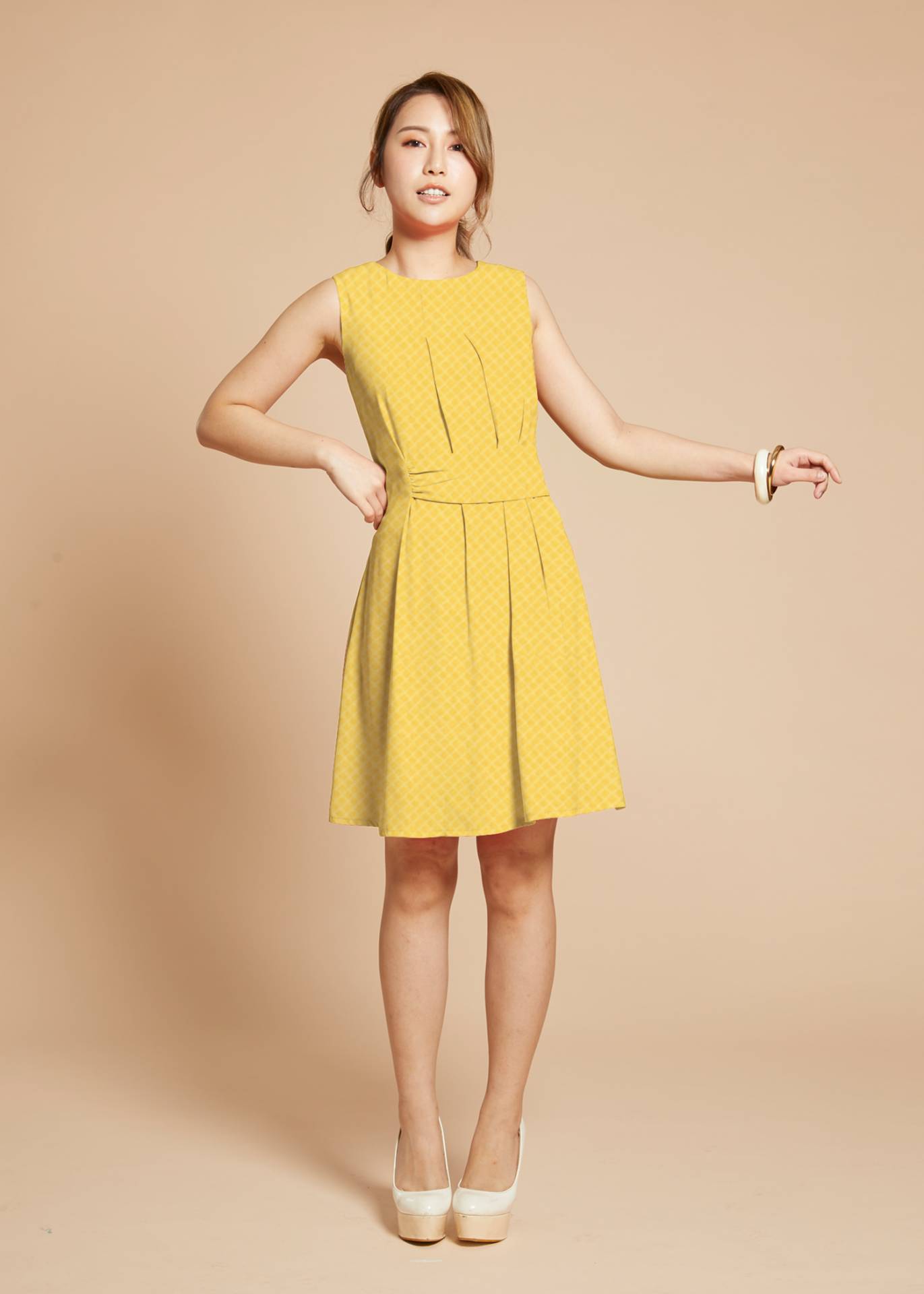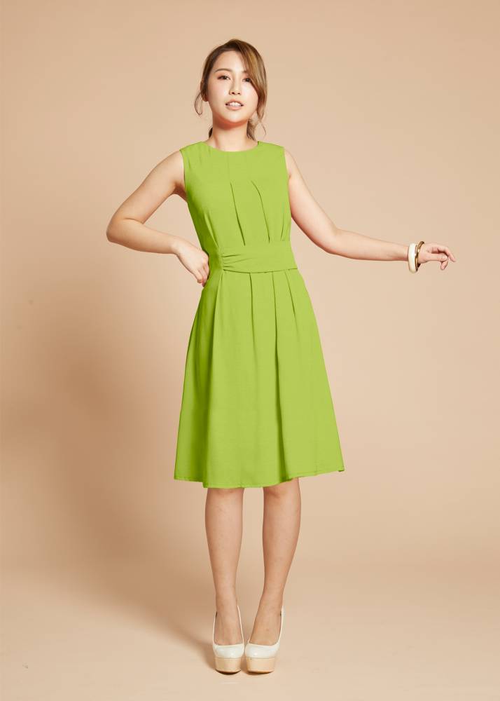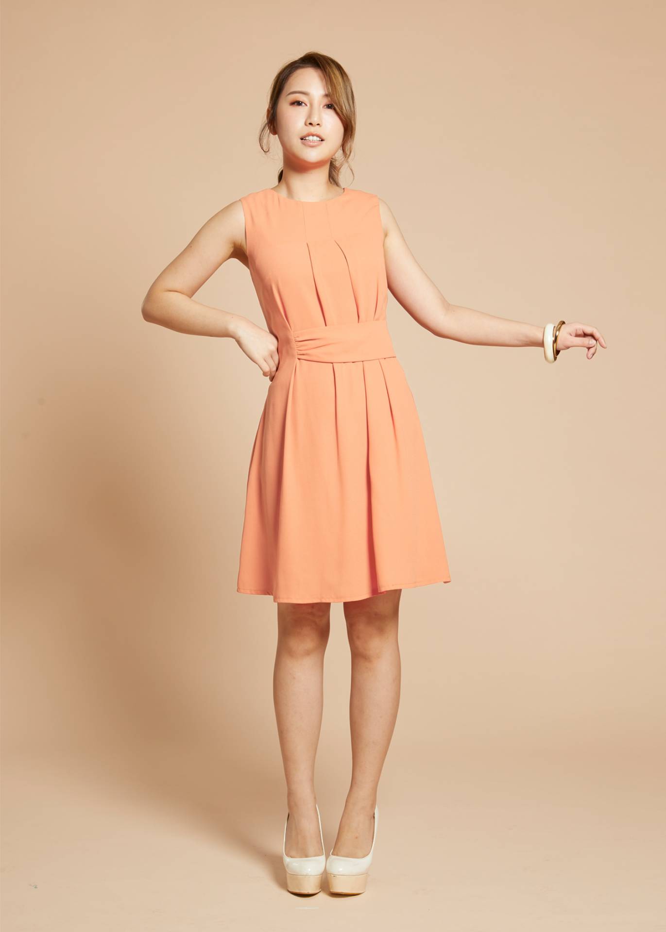 本款以多層合摺腰封的穿帶設計,貫穿環繞前後衣身。