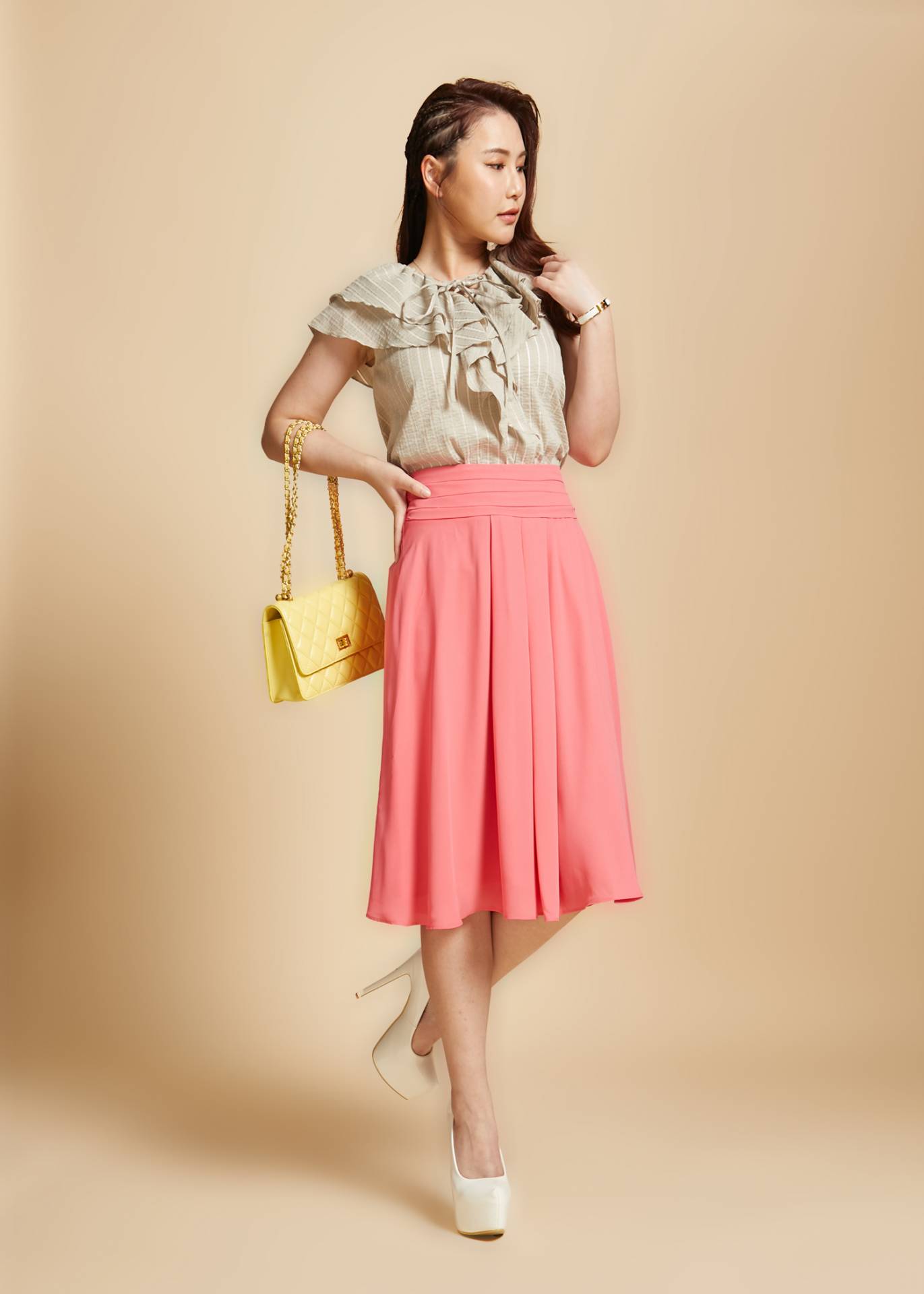 本款多摺腰帶細節設計,讓腰線更顯婀娜,